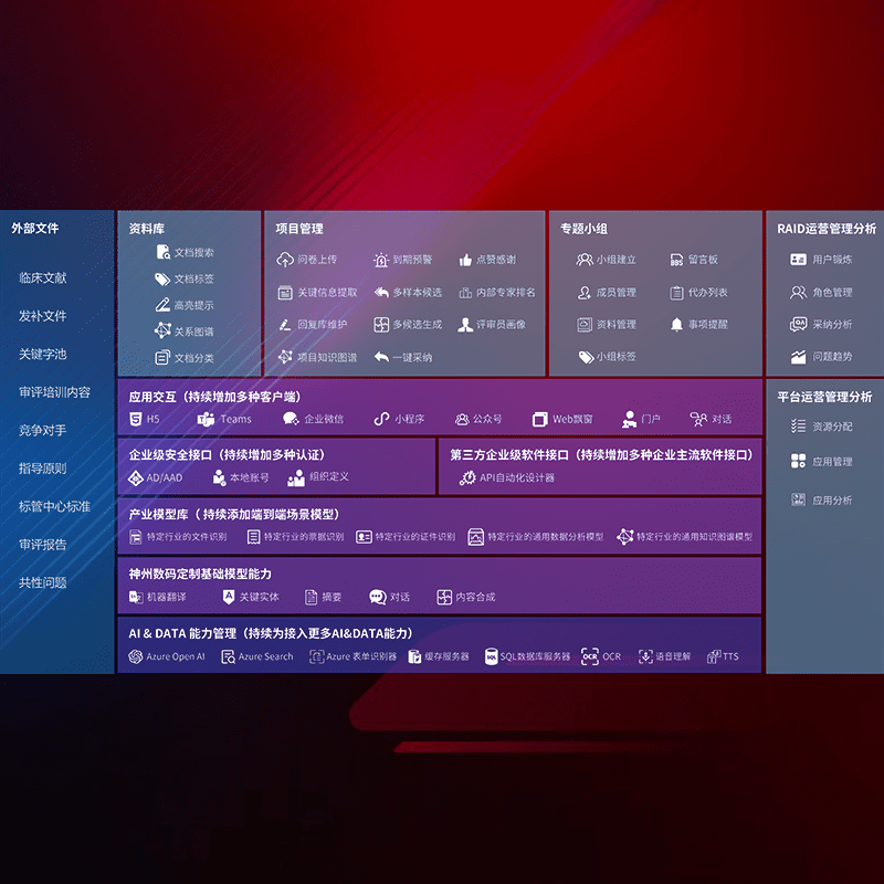医疗器械产品上市前,,,,要熟悉严格与繁复评审标准,,,,整理分析监管机构指导文件中的海量信息。。。企业急需一个智能化解决方案,,,,提升知识管理效率,,,提高评审通过率,,,,以提升其市场竞争力。。。